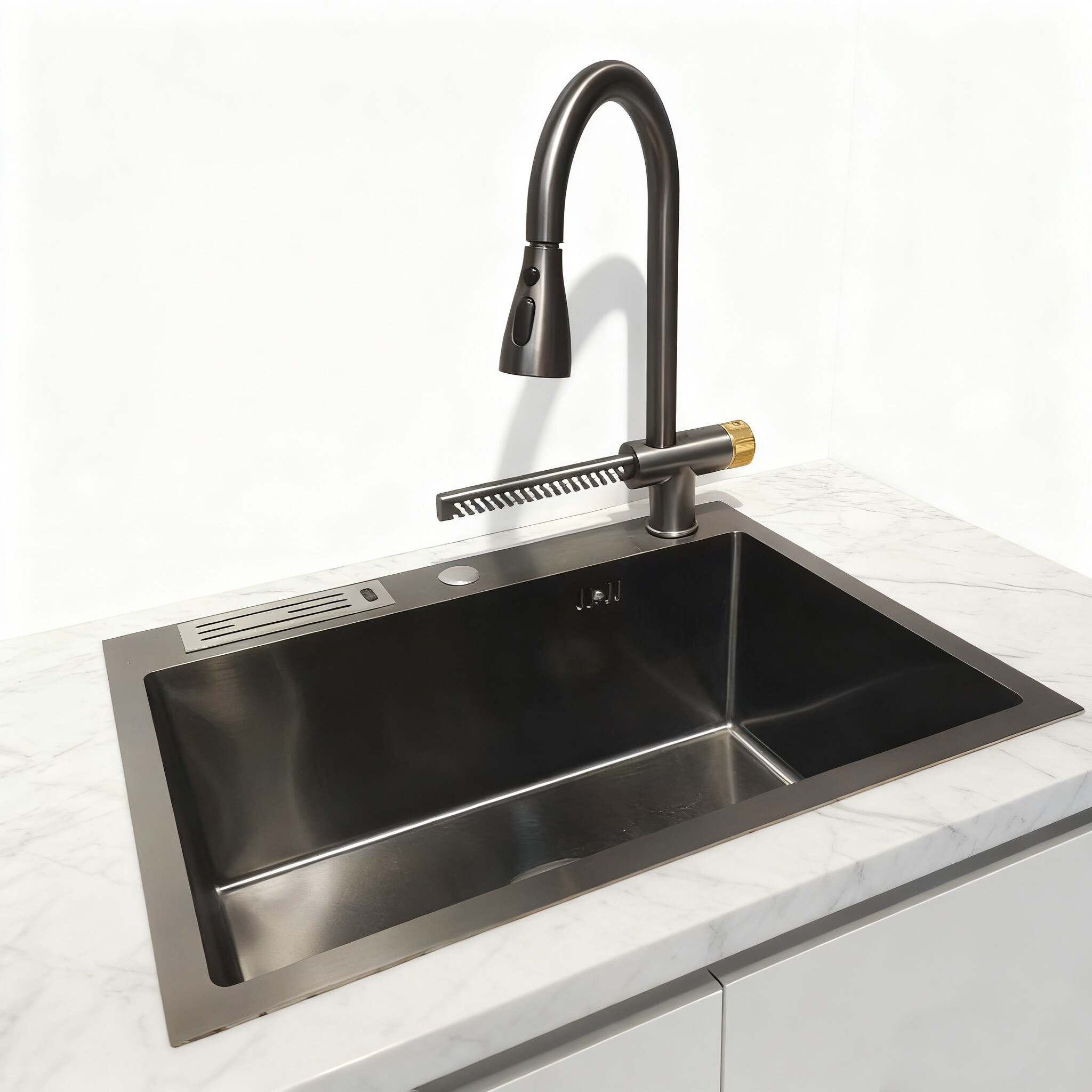 Temel Fonksiyonel Özellikler | 10 inç derin havza (büyük mutfak eşyalarına uyar), paslanmaz, çizilmeye karşı dayanıklı, ses yalıtımlı kauçuk pedler, yoğuşma önleyici alt kaplama, eğimli havza (hızlı su tahliyesi) |